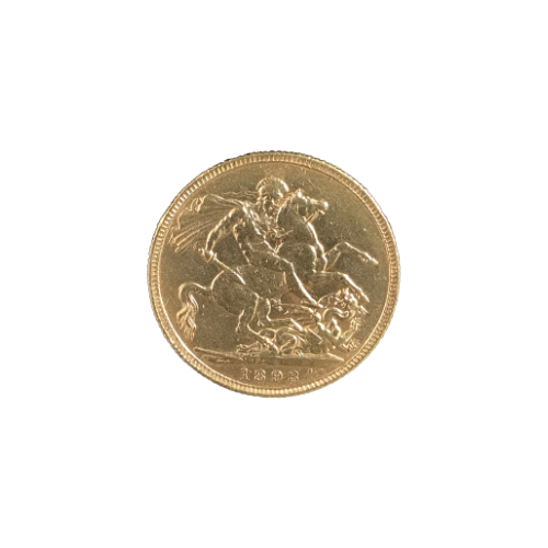 Moeda de ouro original do Reino Unido datada do ano de 1893.