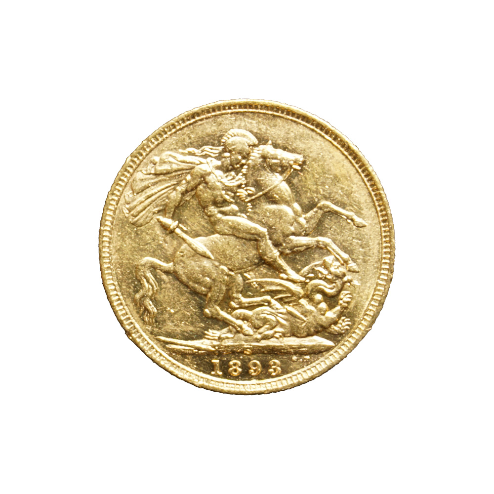 Moeda de ouro original do Reino Unido datada do ano de 1893.
