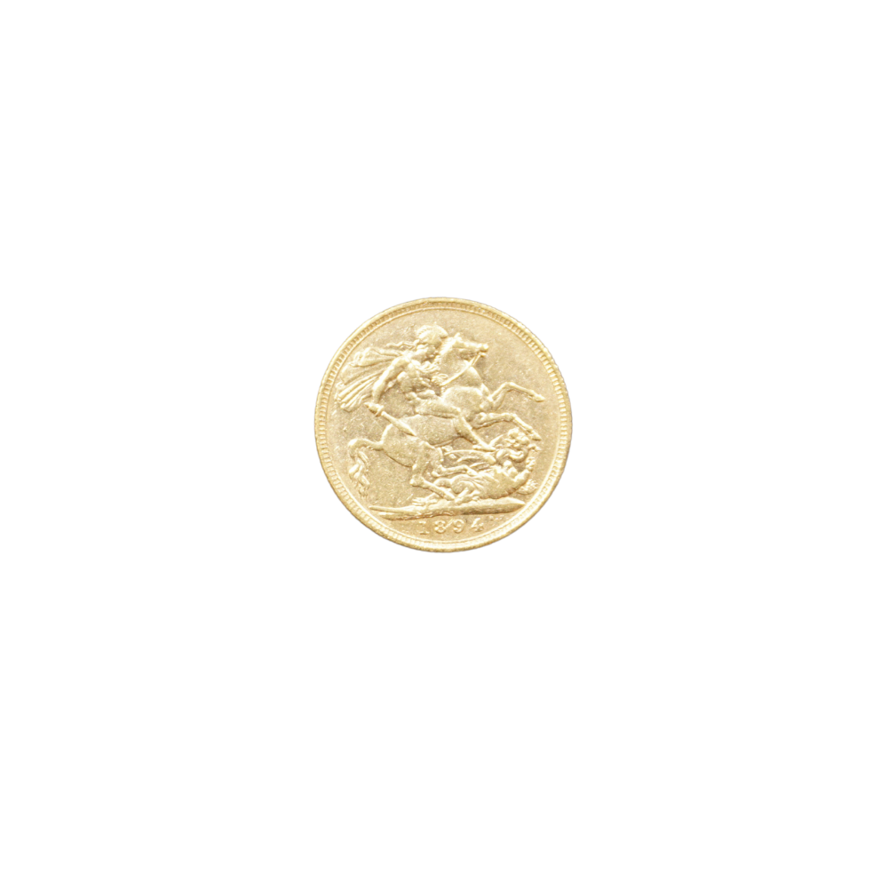 Moeda de ouro original do Reino Unido datada do ano de 1894.