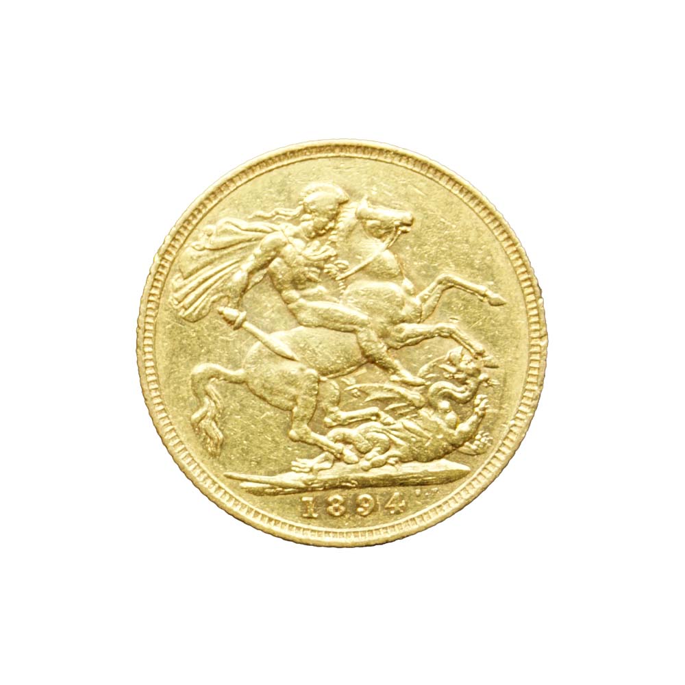 Moeda de ouro original do Reino Unido datada do ano de 1894.
