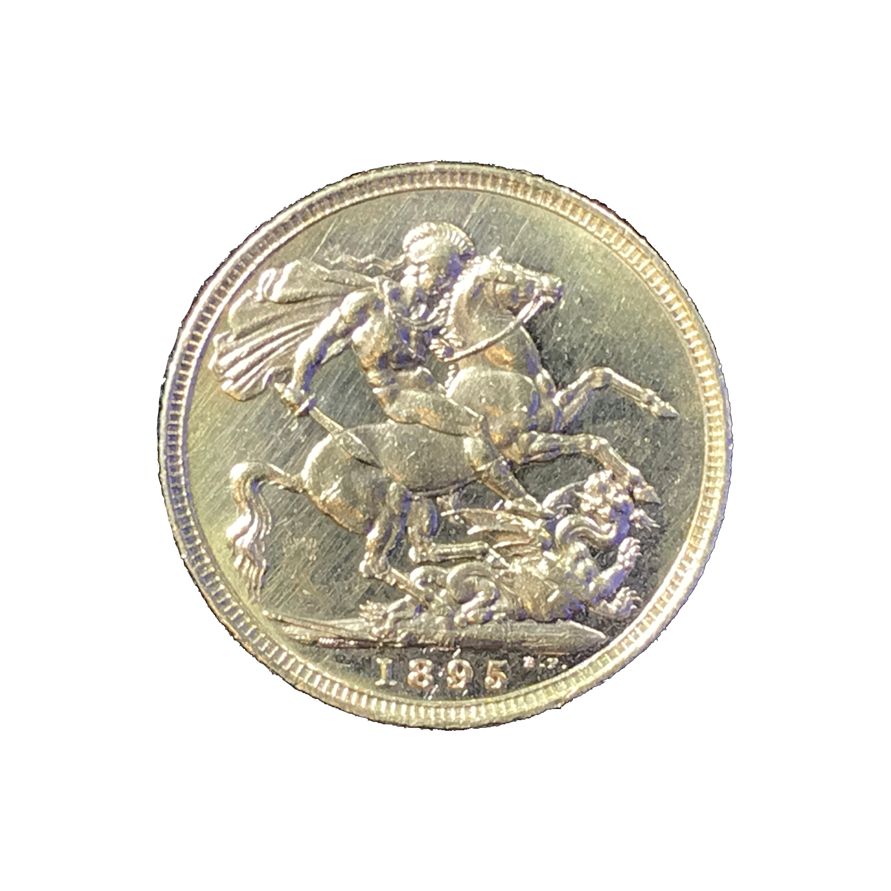 Moeda de ouro original do Reino Unido datada do ano de 1895.