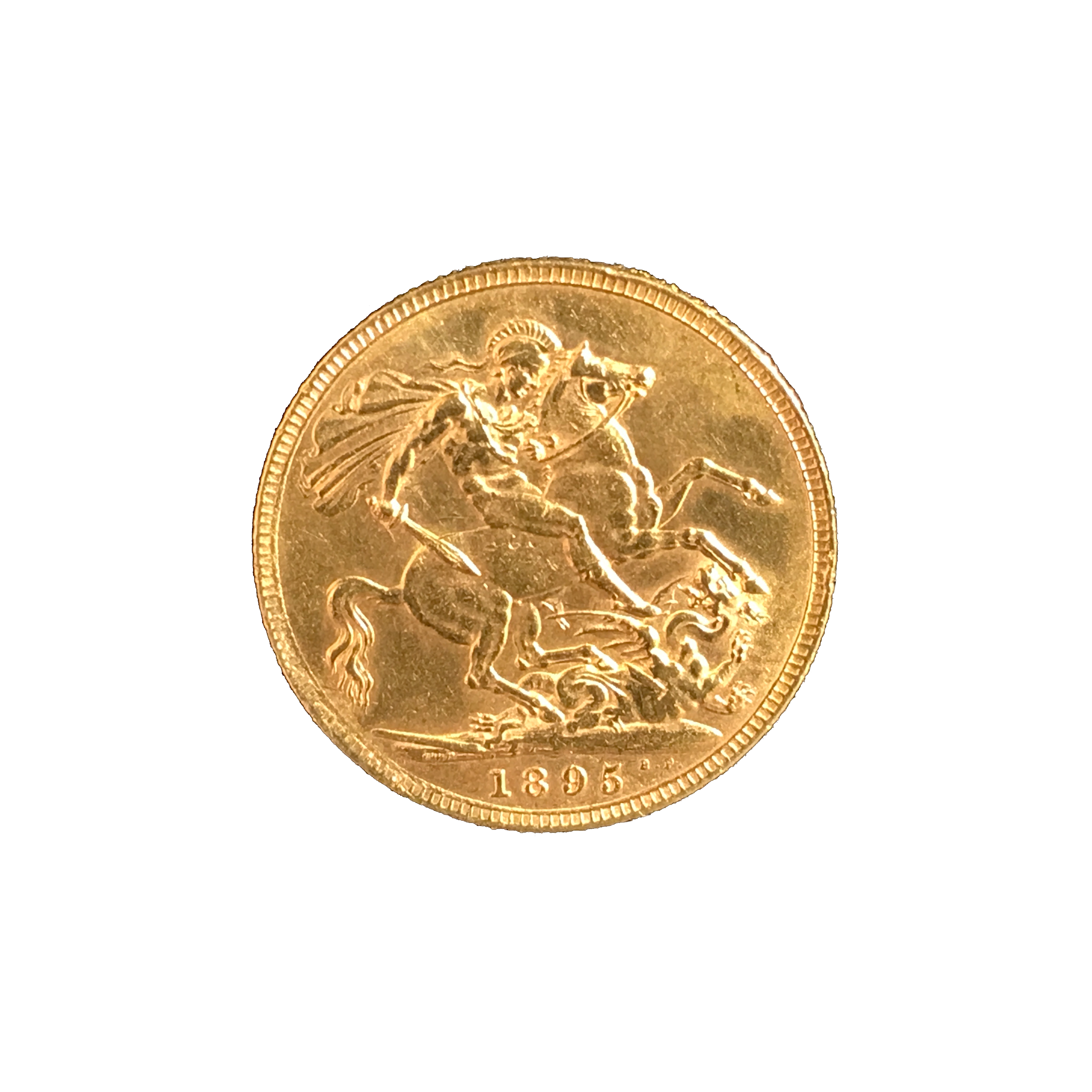 Moeda de ouro original do Reino Unido datada do ano de 1895.