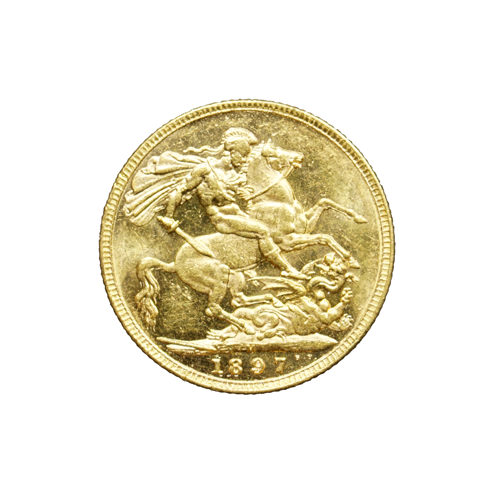 Moeda de ouro original do Reino Unido datada do ano de 1897.