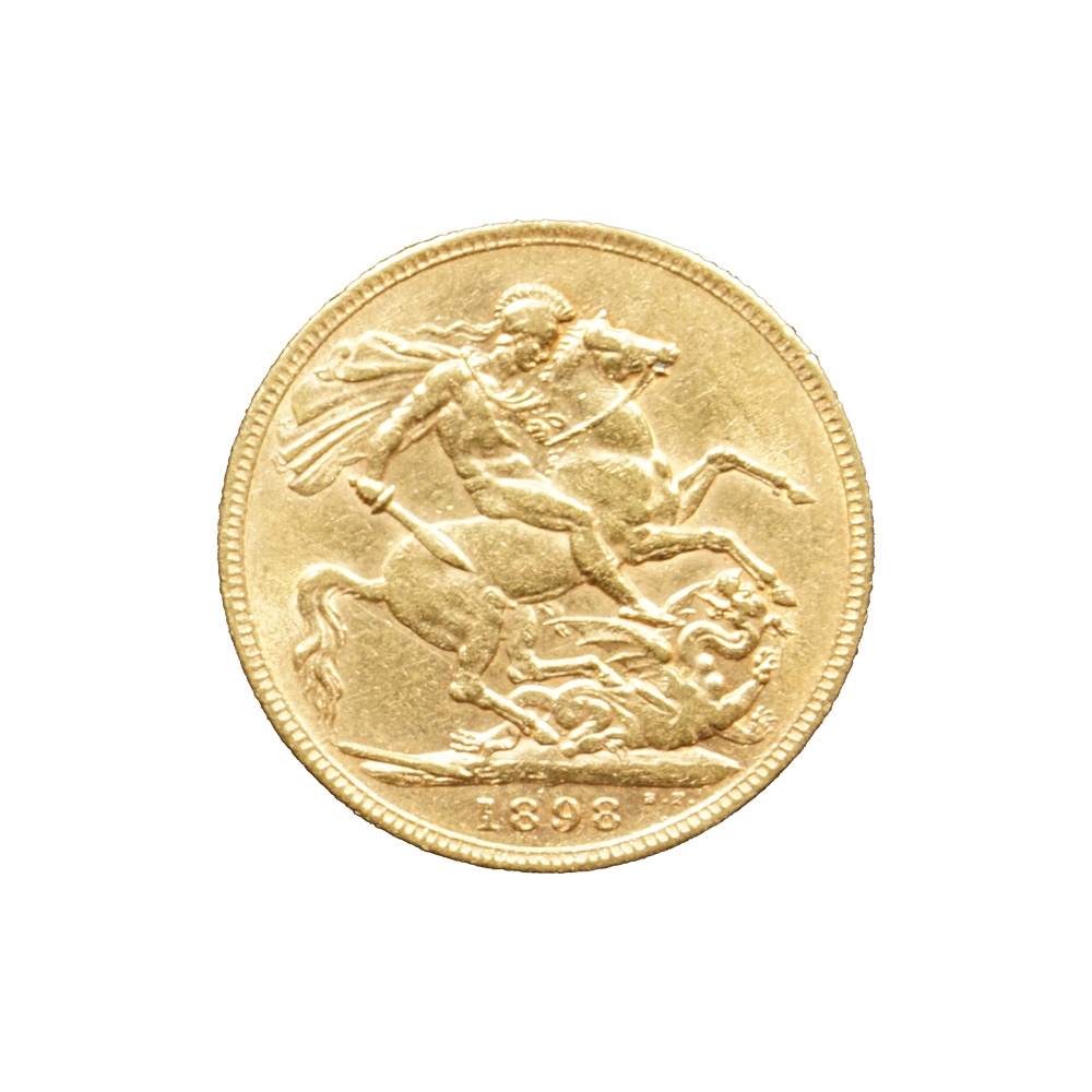 Moeda de ouro original do Reino Unido datada do ano de 1898.