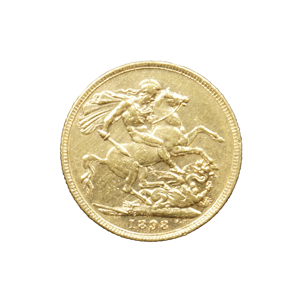 Moeda de ouro original do Reino Unido datada do ano de 1898.
