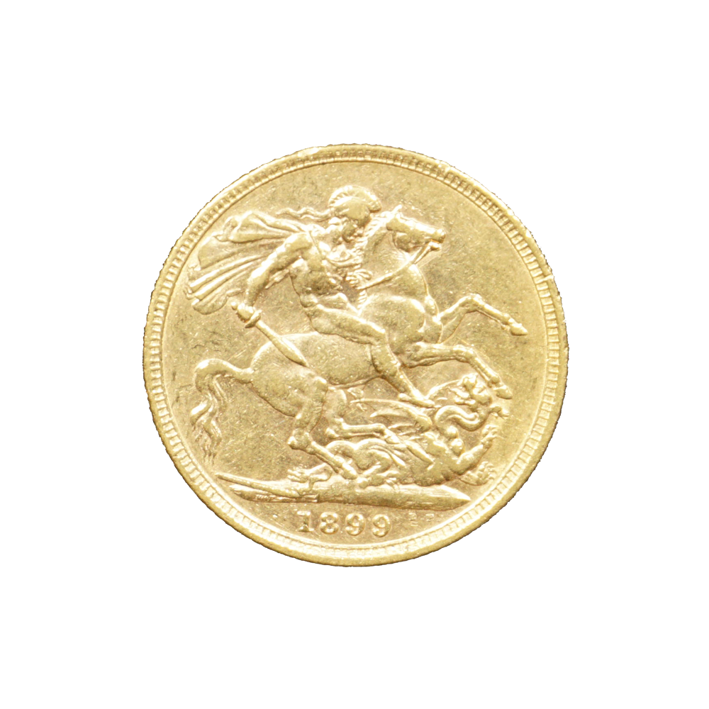 Moeda de ouro original do Reino Unido datada do ano de 1899.