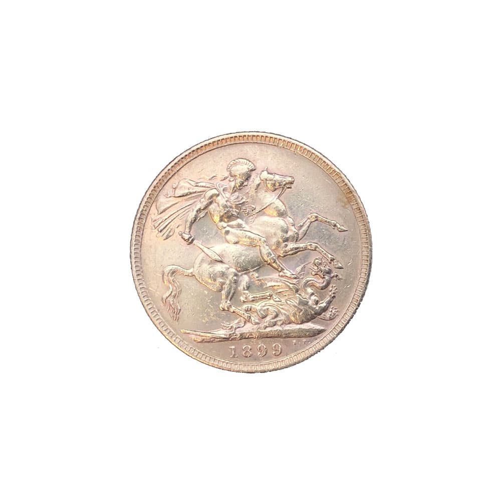 Moeda de ouro original do Reino Unido datada do ano de 1899.