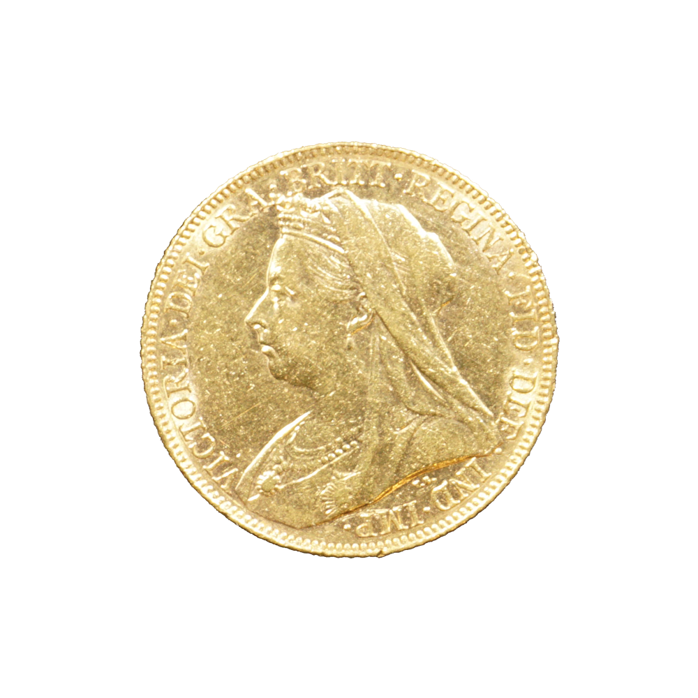 Moeda de ouro original do Reino Unido datada do ano de 1900.