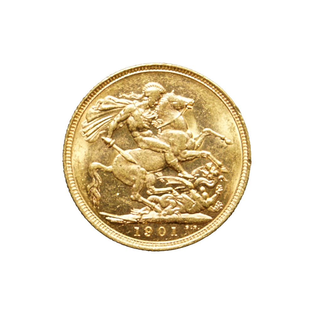 Moeda de ouro original do Reino Unido datada do ano de 1901.