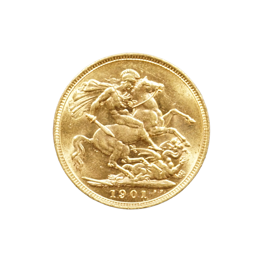 Moeda de ouro original do Reino Unido datada do ano de 1901.