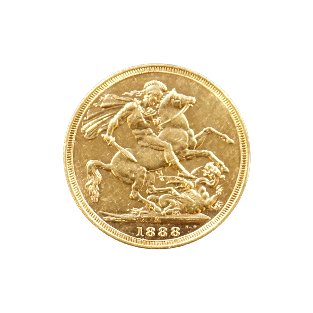 Moeda de ouro original do Reino Unido datada do ano de 1888.
