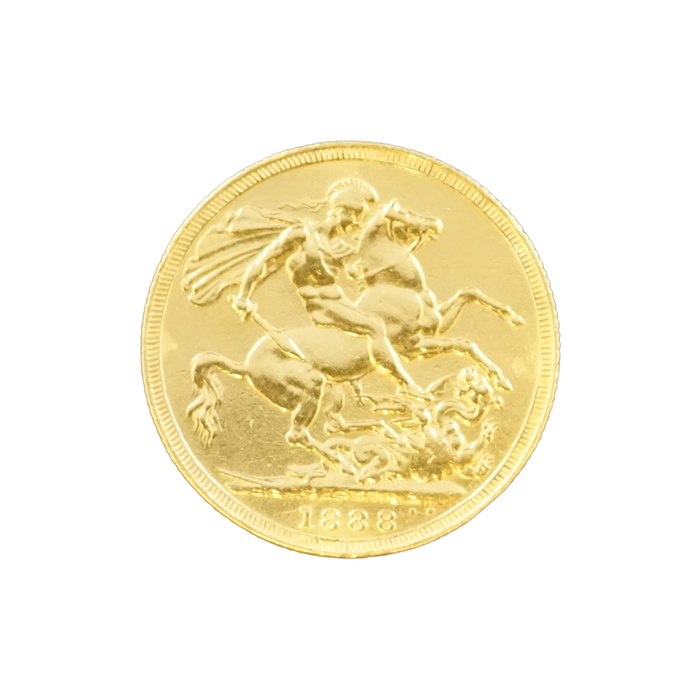 Moeda de ouro original do Reino Unido datada do ano de 1888.