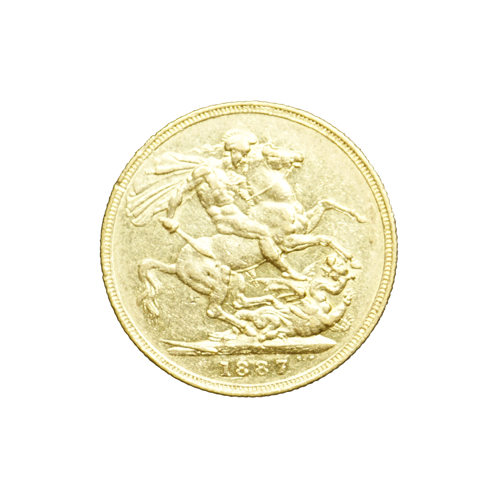 Moeda de ouro original do Reino Unido datada do ano de 1887.