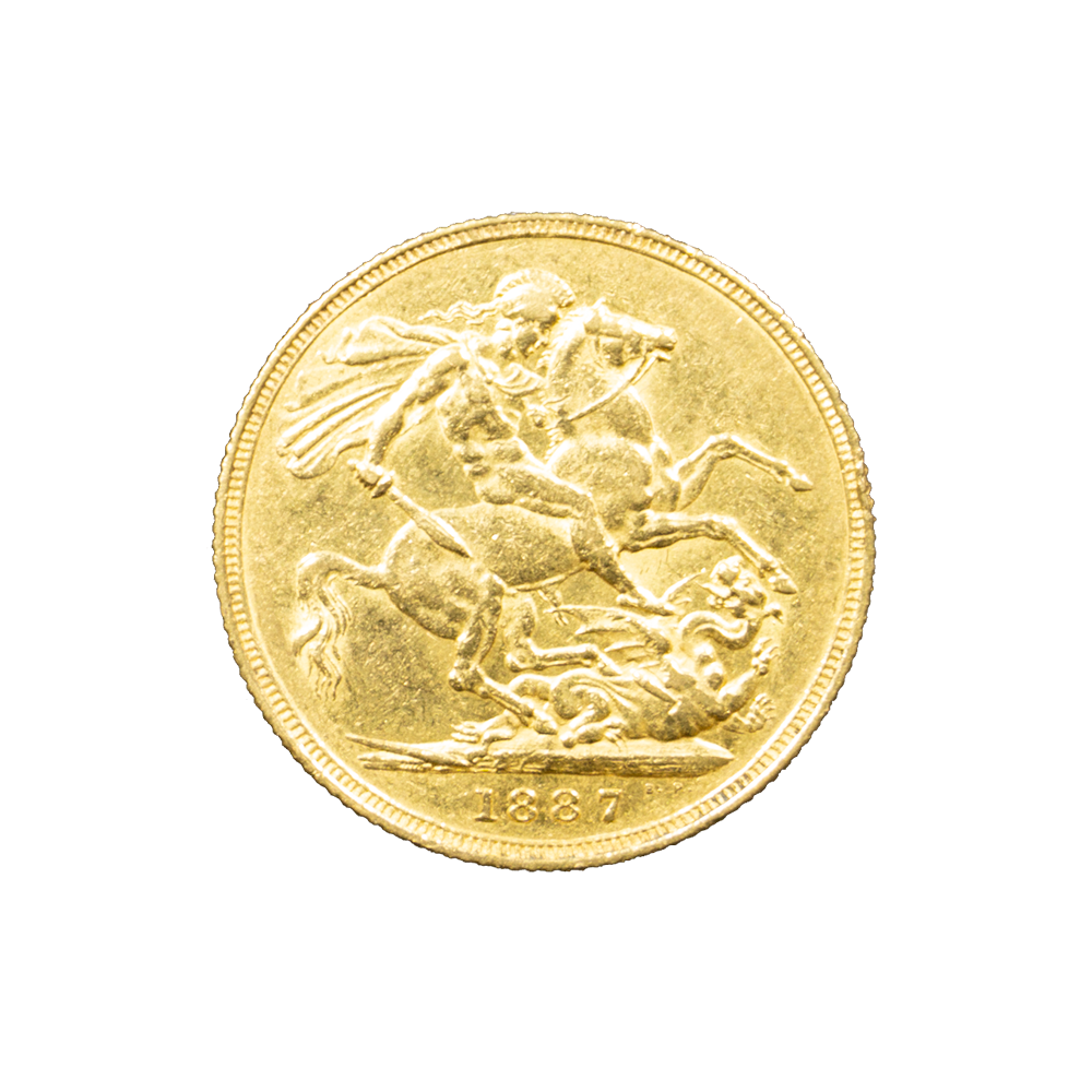 Moeda de ouro original do Reino Unido datada do ano de 1887.