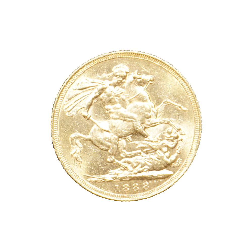 Moeda de ouro original do Reino Unido datada do ano de 1888.