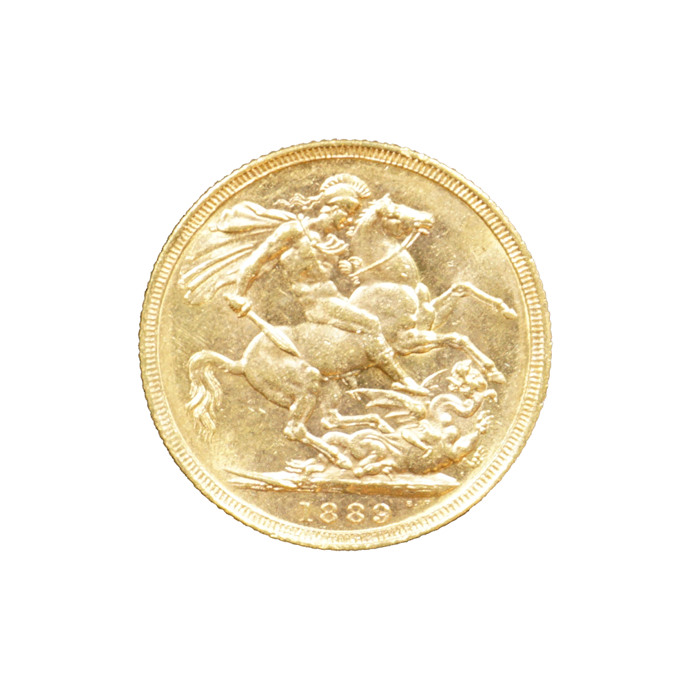 Moeda de ouro original do Reino Unido datada do ano de 1889.