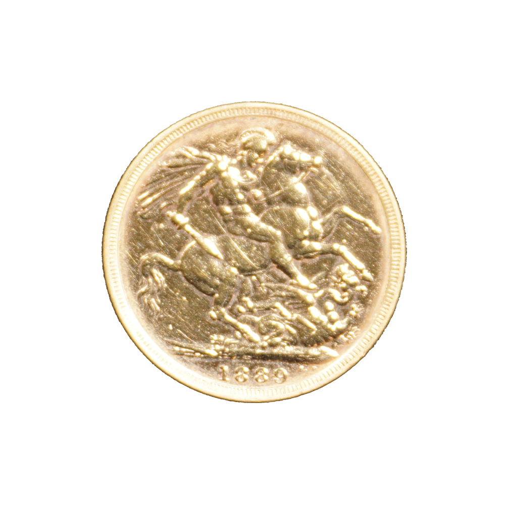 Moeda de ouro original do Reino Unido datada do ano de 1889.