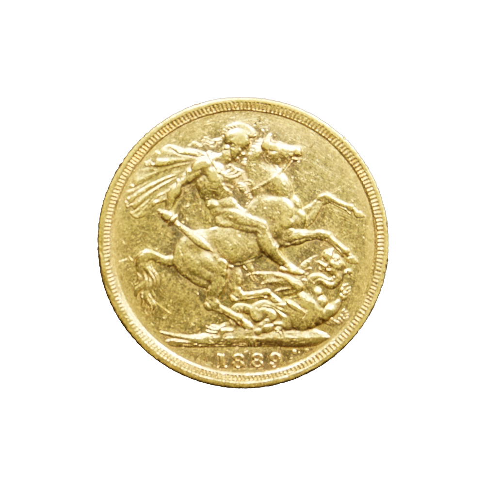 Moeda de ouro original do Reino Unido datada do ano de 1889.