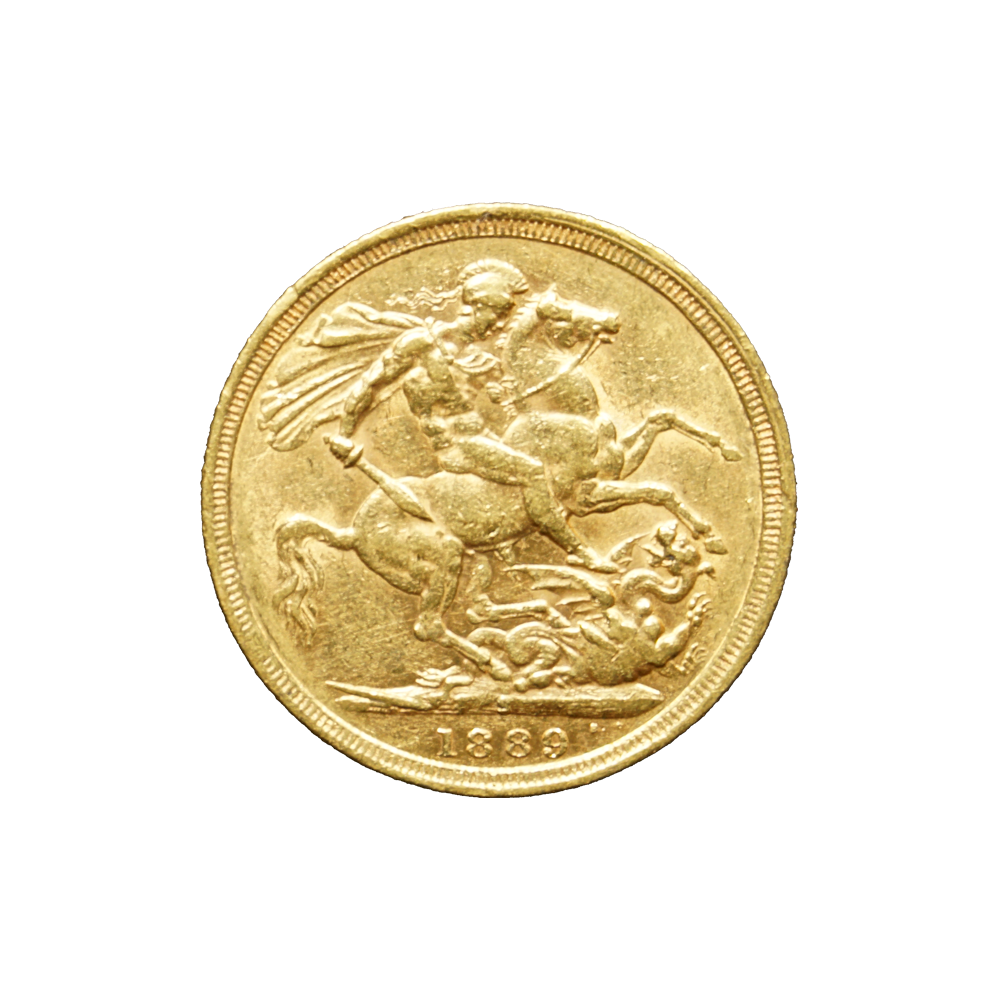 Moeda de ouro original do Reino Unido datada do ano de 1889.