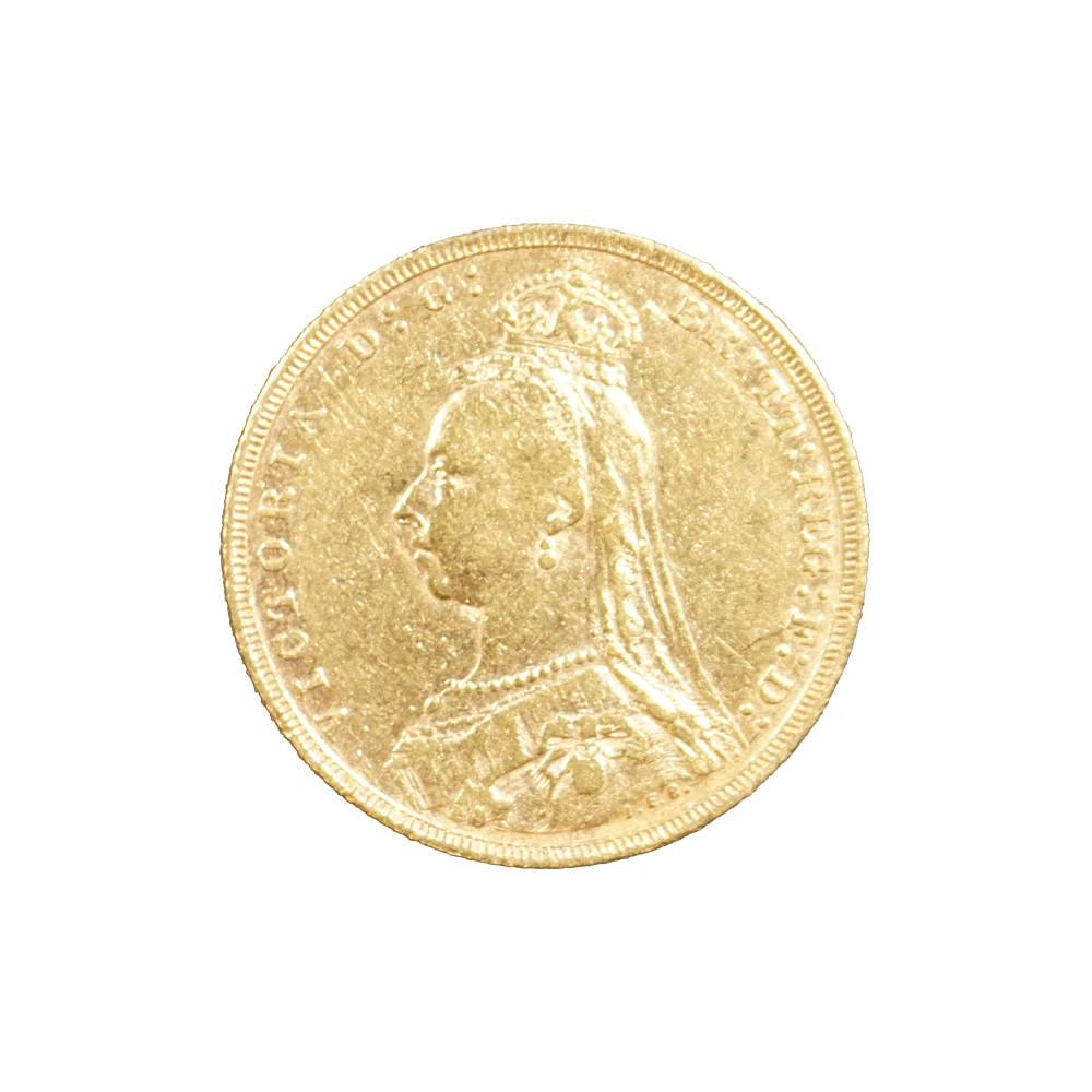 Moeda de ouro original do Reino Unido datada do ano de 1890.