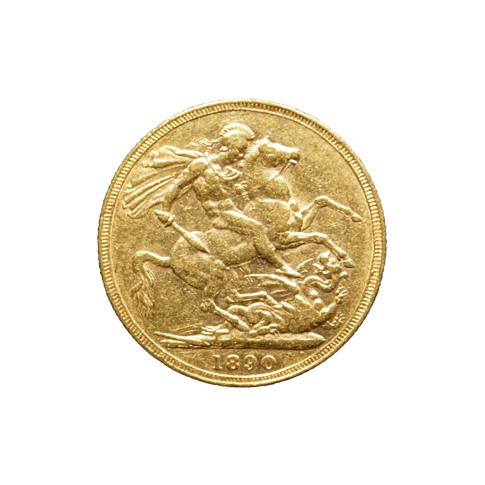 Moeda de ouro original do Reino Unido datada do ano de 1890.
