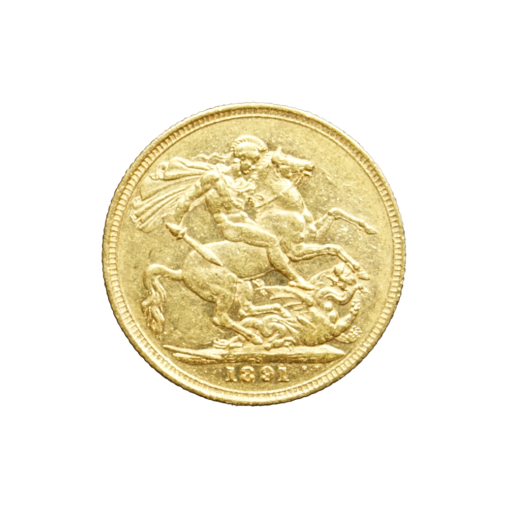 Moeda de ouro original do Reino Unido datada do ano de 1891.