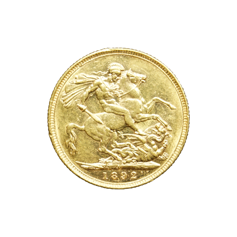 Moeda de ouro original do Reino Unido datada do ano de 1892.