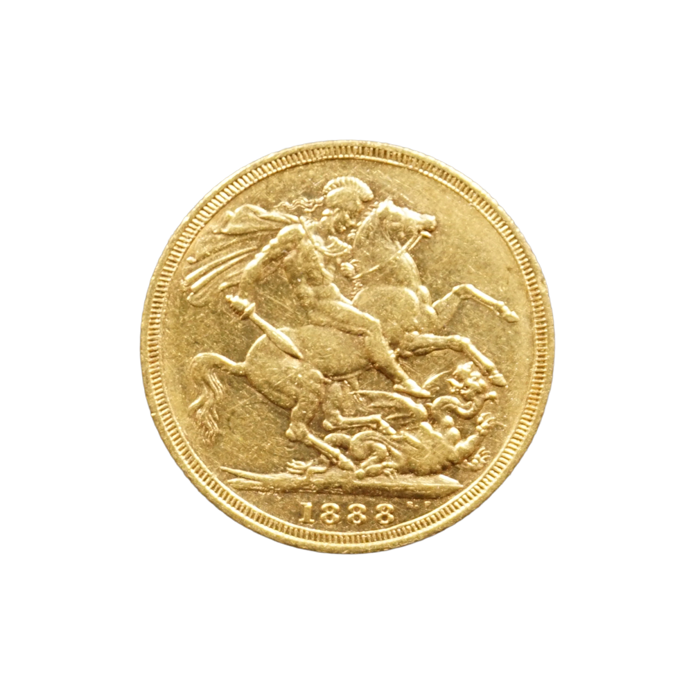 Moeda de ouro original do Reino Unido datada do ano de 1888.