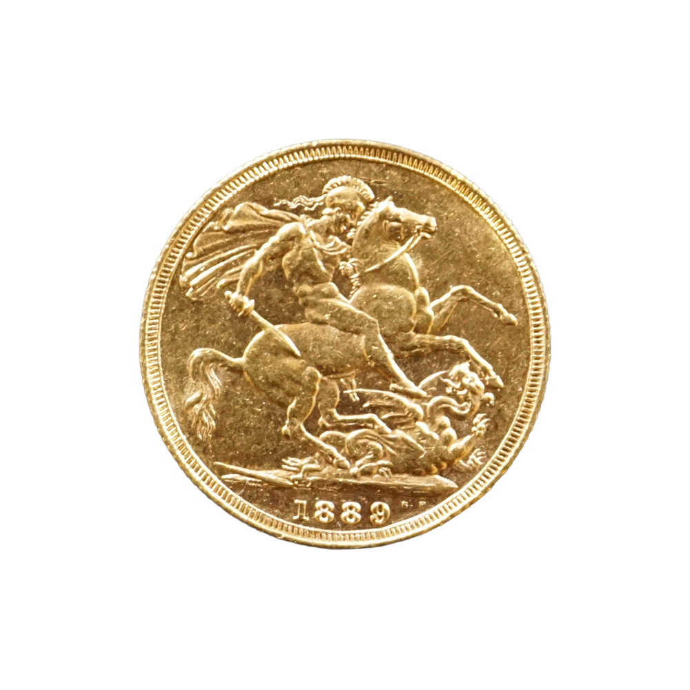 Moeda de ouro original do Reino Unido datada do ano de 1889.
