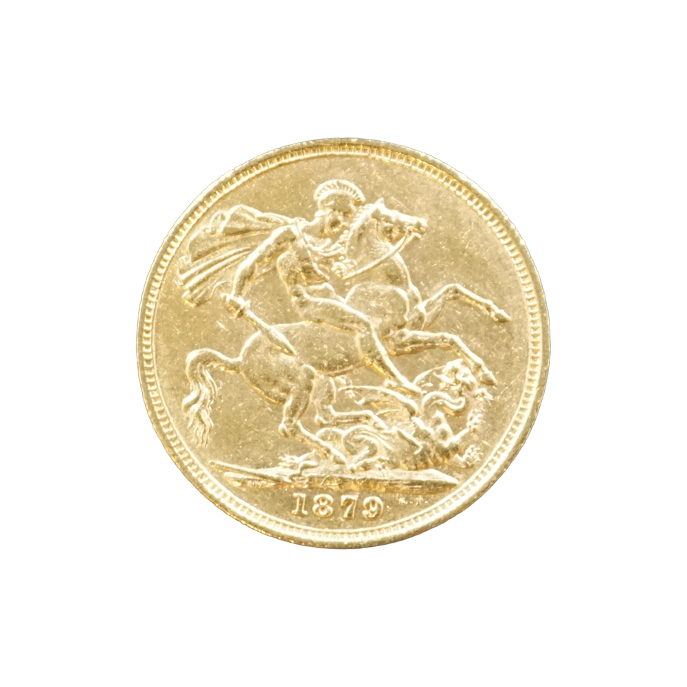 Moeda de ouro original do Reino Unido datada do ano de 1879.