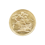 Moeda de ouro original do Reino Unido datada do ano de 1880.