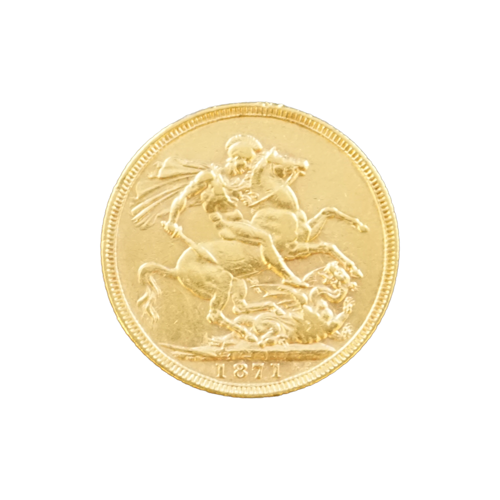 Moeda de ouro original do Reino Unido datada do ano de 1871.
