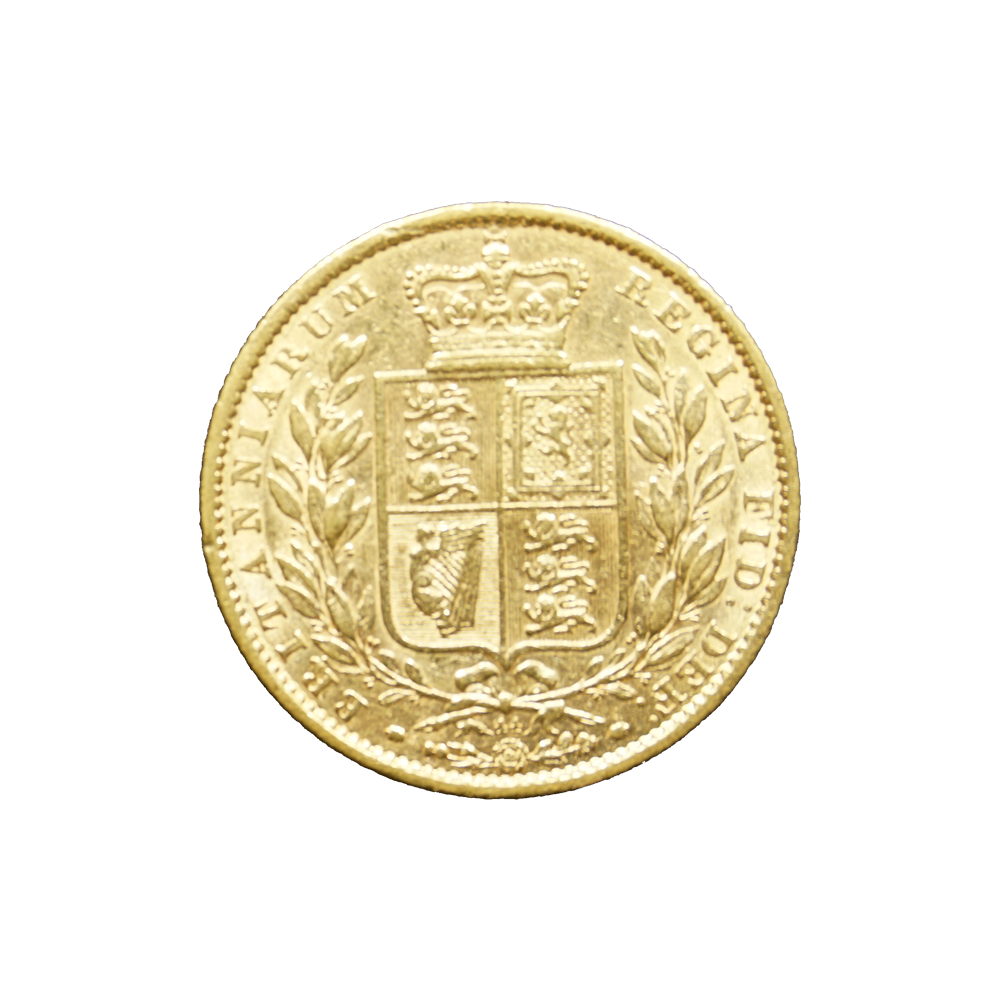Moeda de ouro original do Reino Unido datada do ano de 1869.