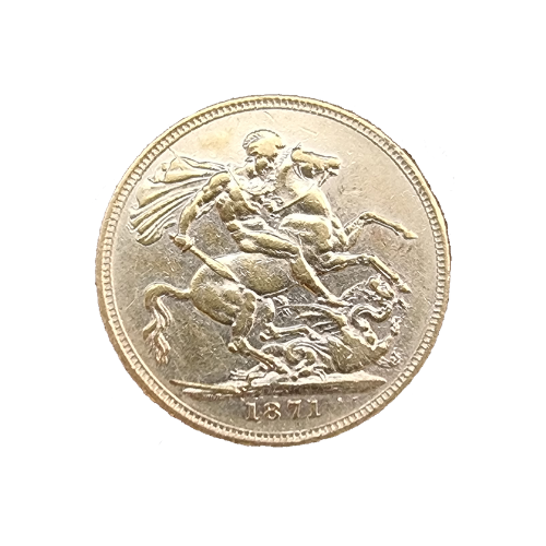 Moeda de ouro original do Reino Unido datada do ano de 1871.