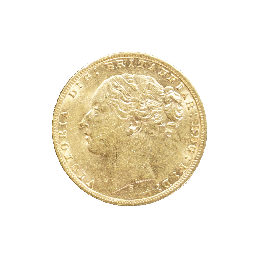 Moeda de ouro original do Reino Unido datada do ano de 1872.