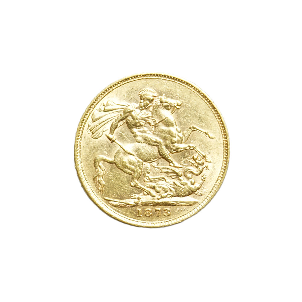Moeda de ouro original do Reino Unido datada do ano de 1873.