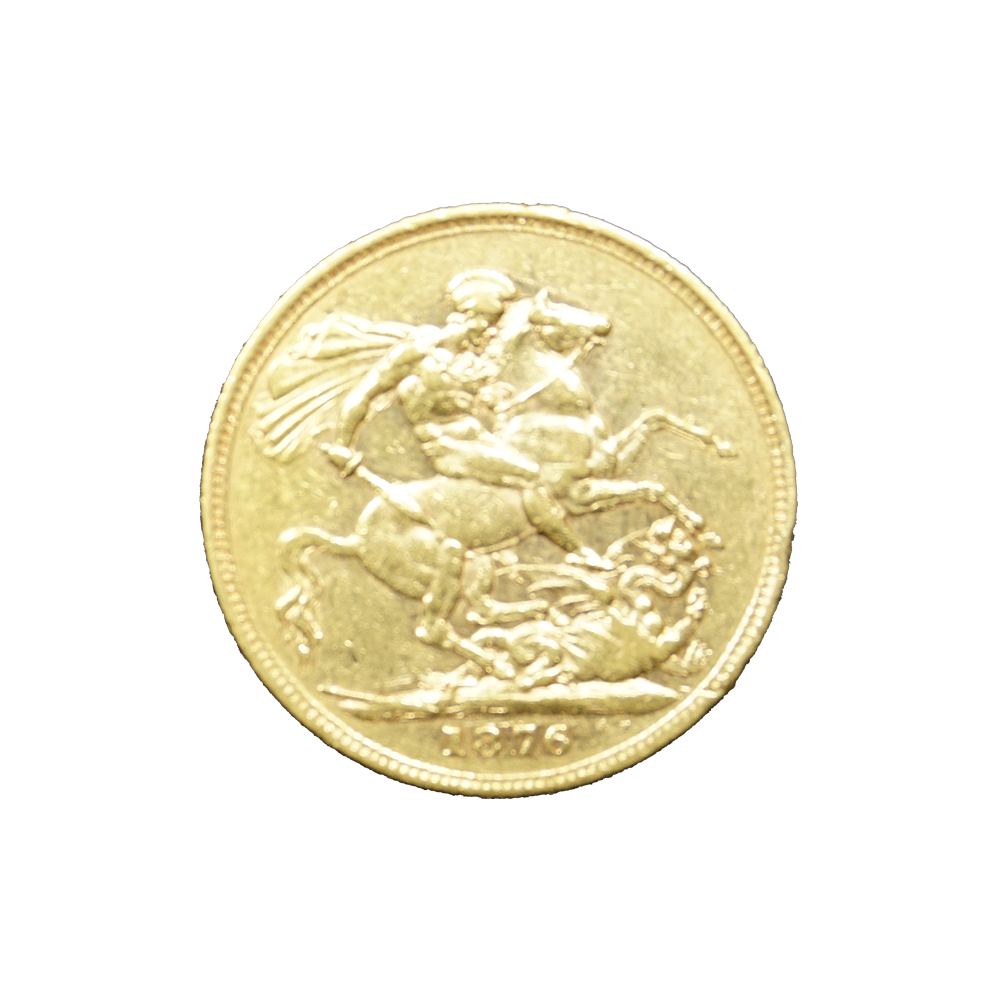 Moeda de ouro original do Reino Unido datada do ano de 1876.