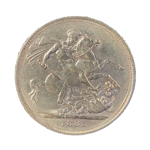 Moeda de ouro original do Reino Unido datada do ano de 1881.