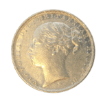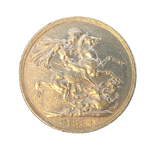 Moeda de ouro original do Reino Unido datada do ano de 1884.