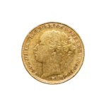 Moeda de ouro original do Reino Unido datada do ano de 1886.