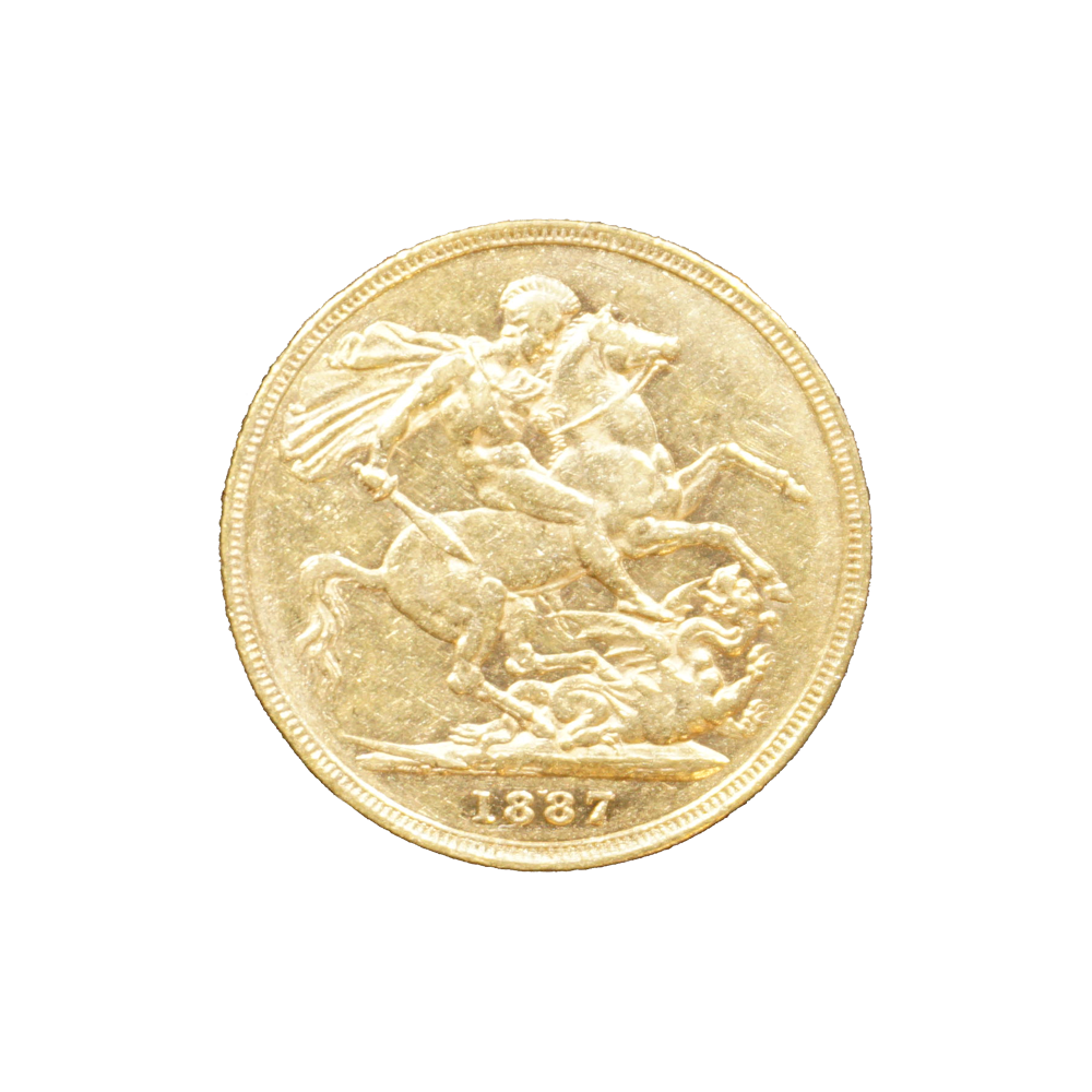 Moeda de ouro original do Reino Unido datada do ano de 1887.