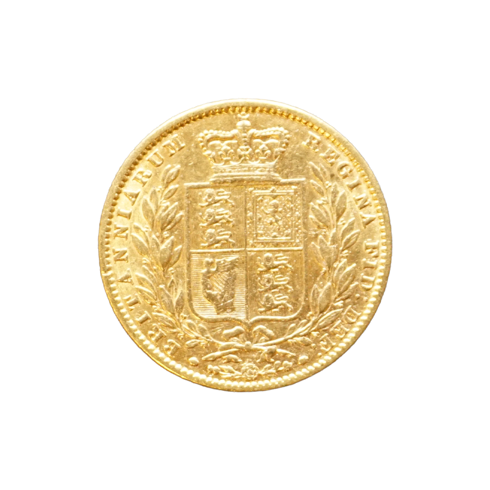 Moeda de ouro original do Reino Unido datada do ano de 1863.