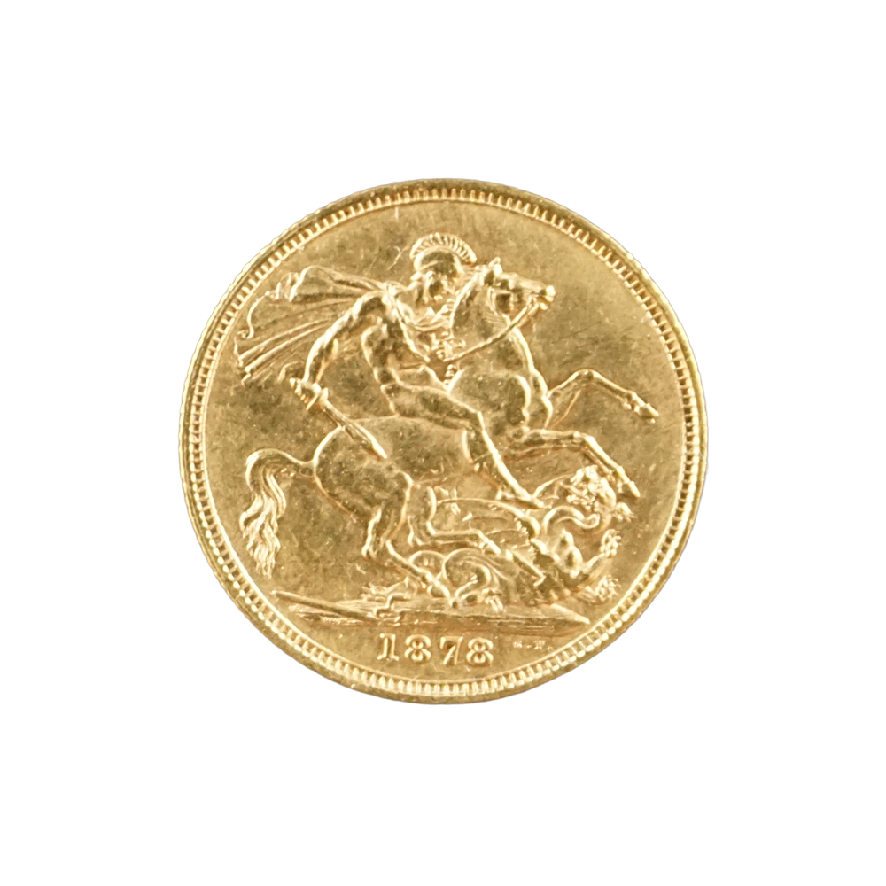 Moeda de ouro original do Reino Unido datada do ano de 1878.