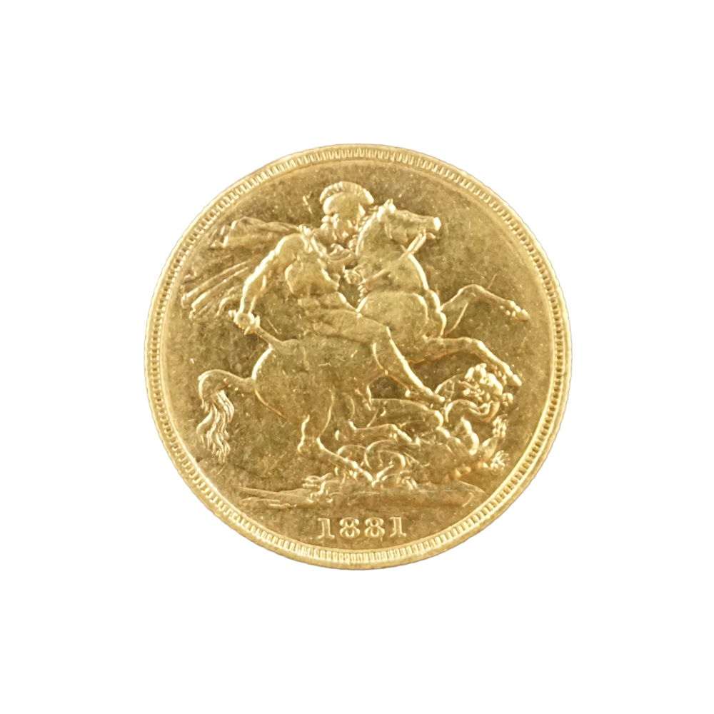 Moeda de ouro original do Reino Unido datada do ano de 1881.