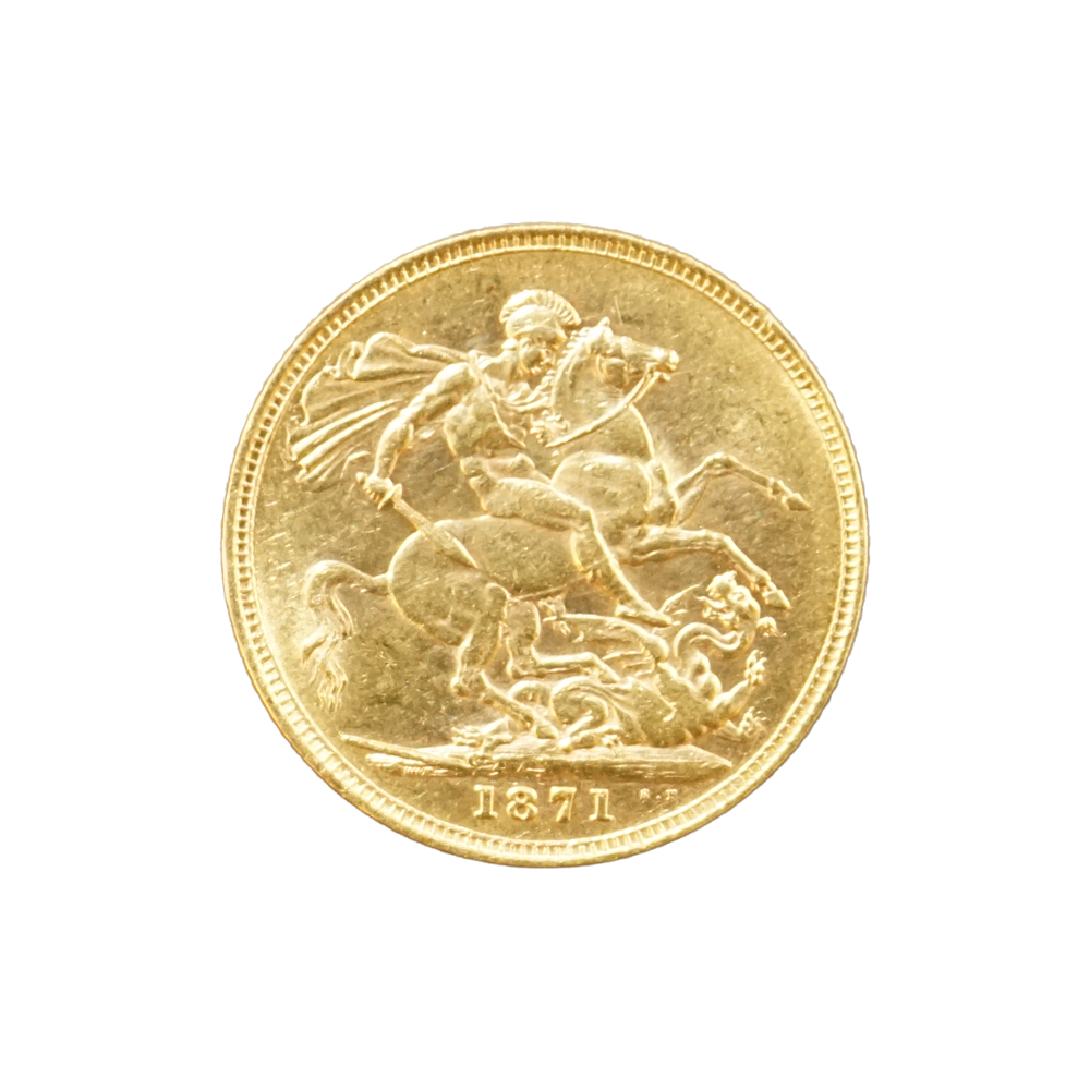 Moeda de ouro original do Reino Unido datada do ano de 1871.