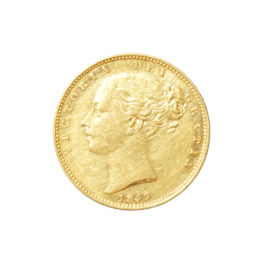 Moeda de ouro original do Reino Unido datada do ano de 1849.