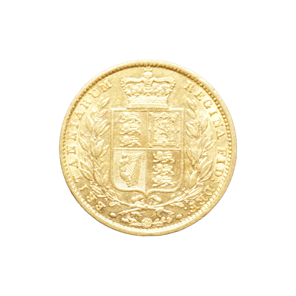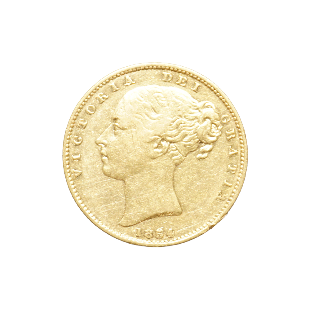 Moeda de ouro original do Reino Unido datada do ano de 1854.