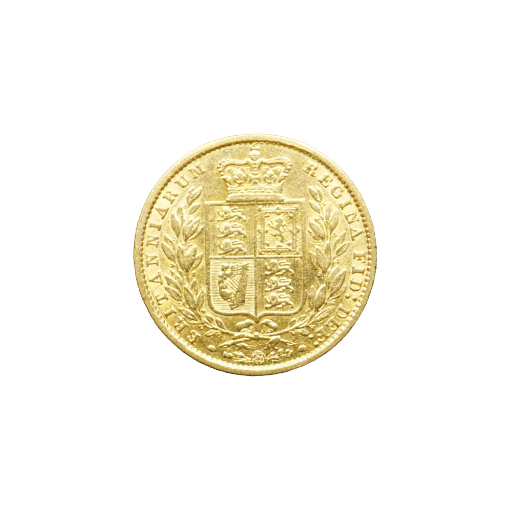 Moeda de ouro original do Reino Unido datada do ano de 1861.