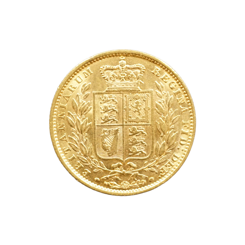 Moeda de ouro original do Reino Unido datada do ano de 1850.
