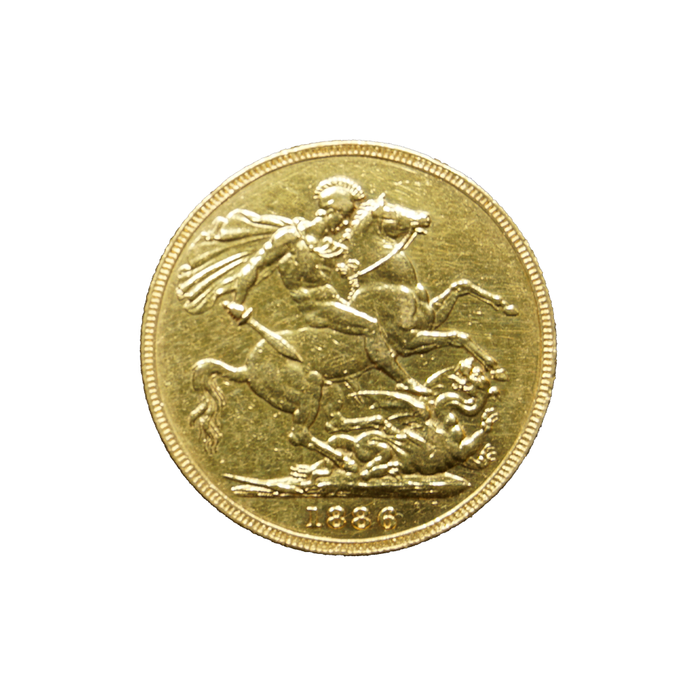 Moeda de ouro original do Reino Unido datada do ano de 1886.